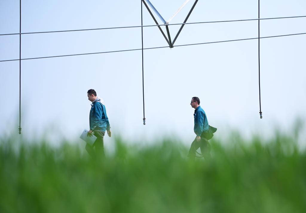 “這個噴頭換過了,你登記好?!痹诤幽鲜●v馬店市西平縣高標準農田示范區的麥田里,河南水投柏農產業發展有限公司運營管理部負責人劉亞輝一邊擰好噴灌機的新噴頭,一邊叮囑一起巡檢的王英凡。