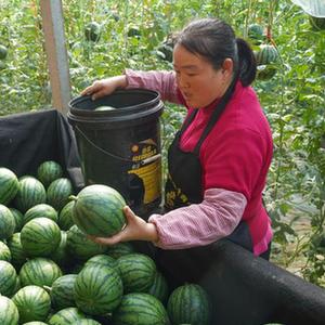 3月17日,在山東省鄒平市西董街道“摩訶山西瓜”高效農業產業園,瓜農在采摘剛成熟的大棚西瓜,準備銷往北京、廣東等地。