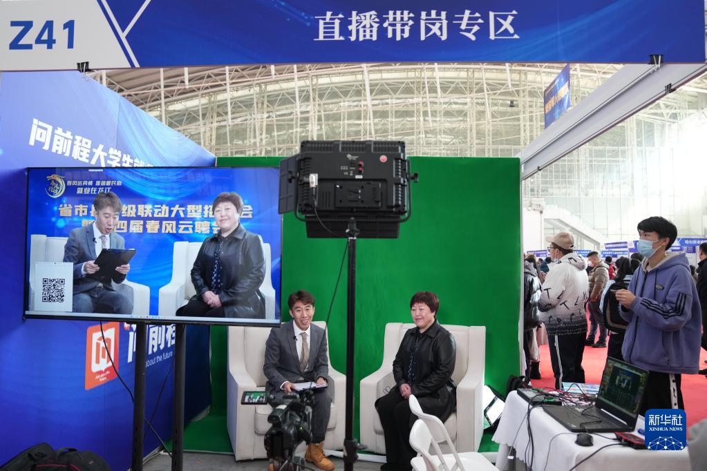 3月18日,在招聘會的直播帶崗專區,工作人員在進行帶崗直播。