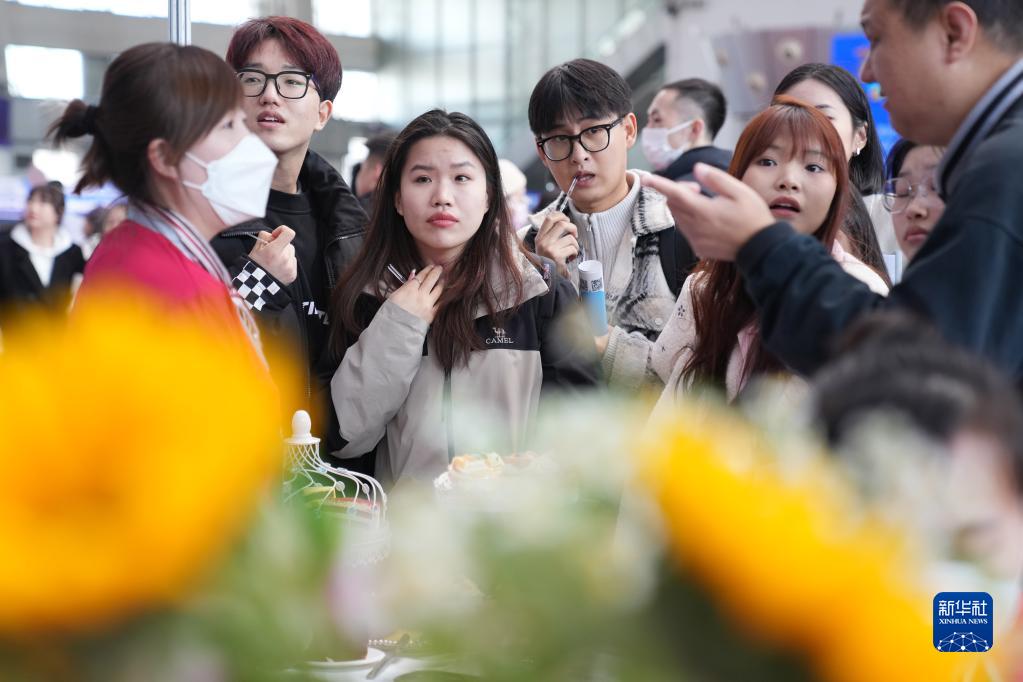 3月18日,在招聘會的勞務品牌項目展示區,求職者在了解情況。