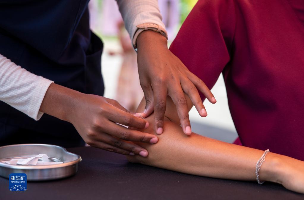 在第94個“中國國醫節”到來之際,南非約翰內斯堡大學針灸教學團隊17日在校園內舉辦一場別開生面的中醫推廣活動,展示拔罐、針灸等傳統中醫技法,并舉行中醫知識問答競賽和健身氣功八段錦表演,引來觀眾陣陣喝彩。