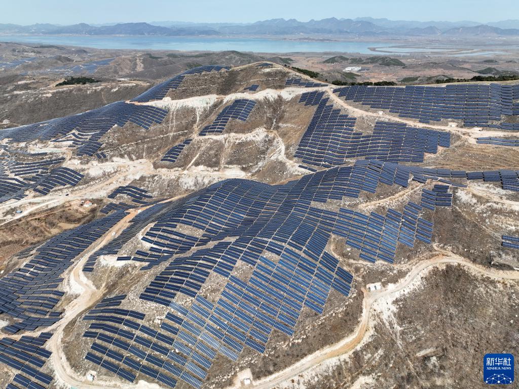 河北省玉田縣唐自頭鎮一處山地光伏發電站(3月17日攝,無人機照片)。