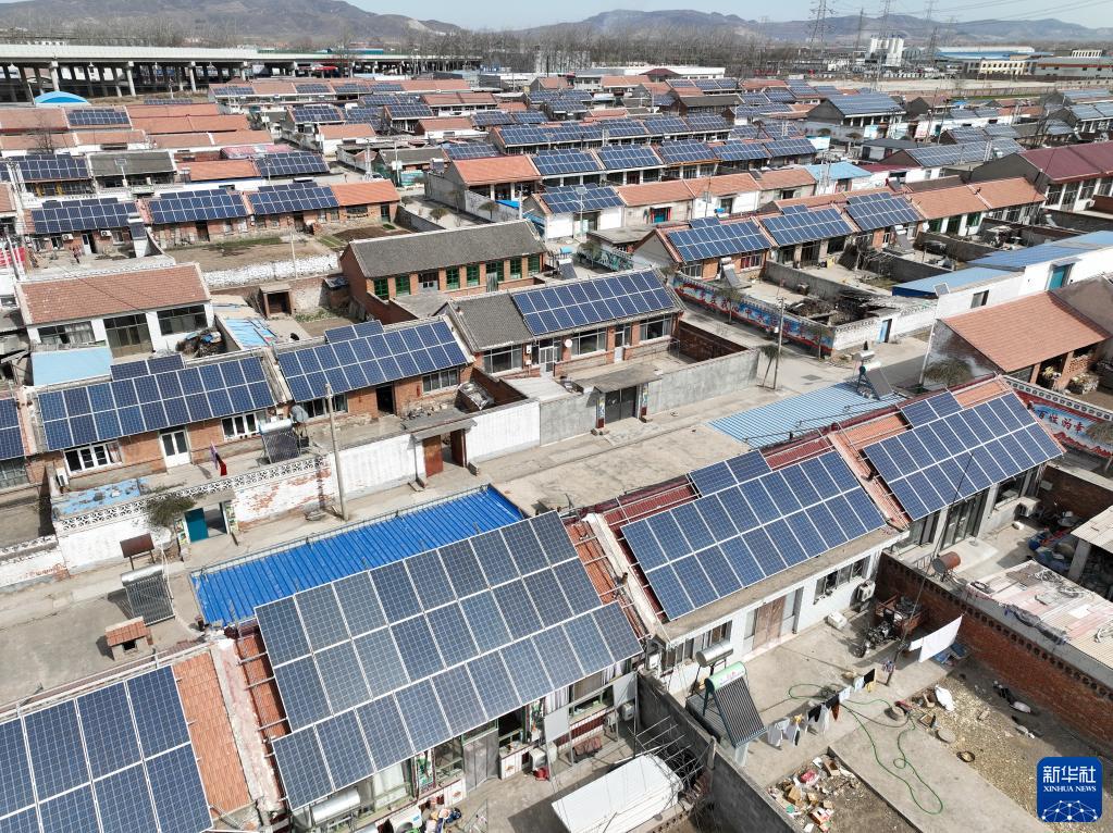 河北省玉田縣孤樹鎮莊戶村的屋頂分布式光伏面板(3月17日攝,無人機照片)。