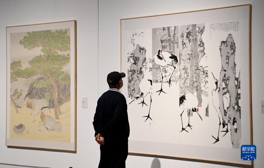 3月18日,參觀者在“第五屆全國中國畫展覽”上參觀展出作品。