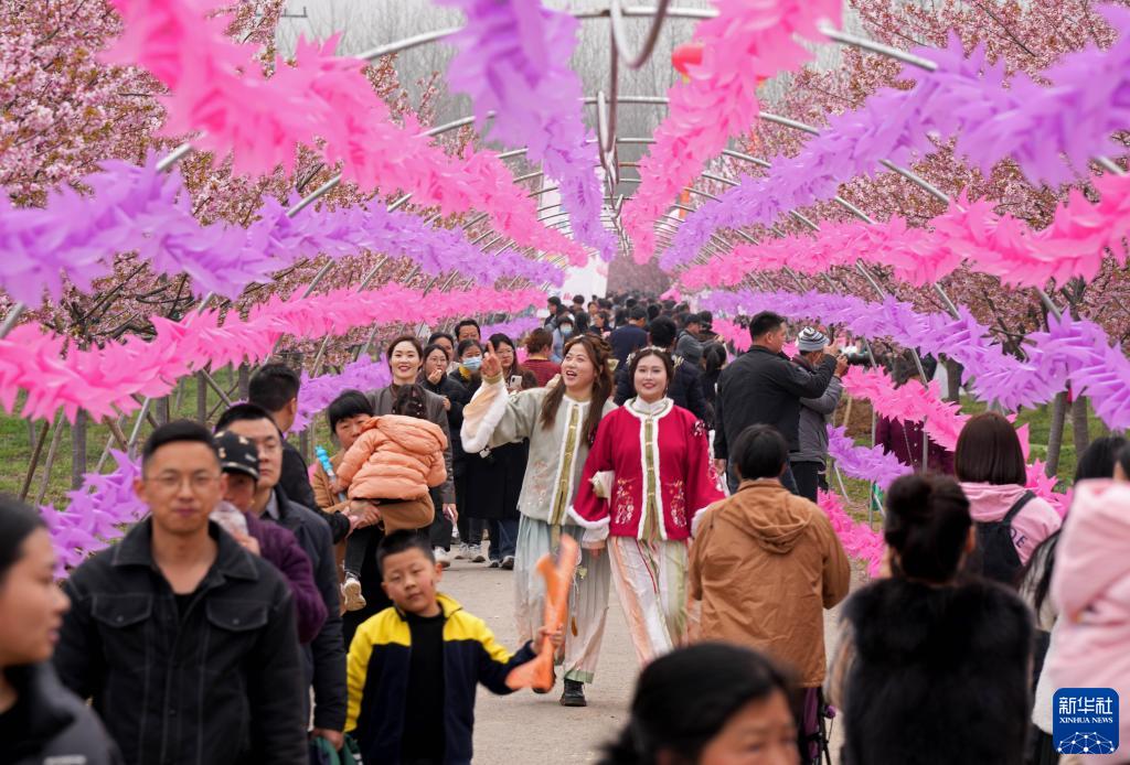 3月18日,游人在全椒縣馬廠鎮龍山櫻花園游玩。