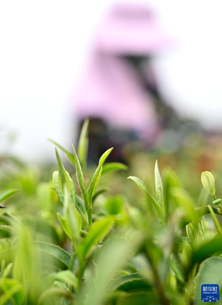 3月18日,茶農在廣西柳城縣伏虎華僑農場茶園里采摘春茶。