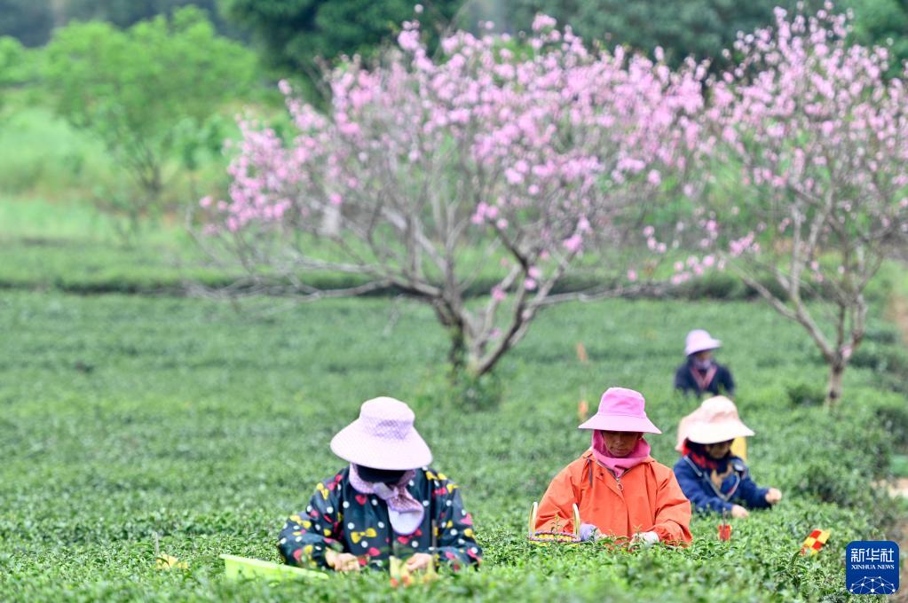 春暖花開時節,廣西柳州市柳城縣茶園春茶陸續開采,當地茶農忙著采茶、制茶,供應各地市場。