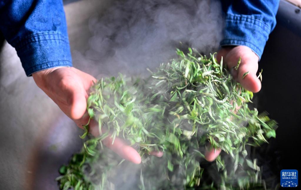 春暖花開時節,廣西柳州市柳城縣茶園春茶陸續開采,當地茶農忙著采茶、制茶,供應各地市場。