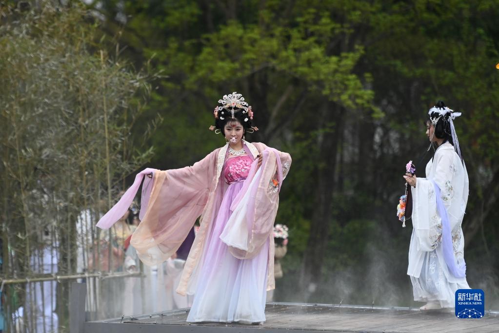 當日,2023西溪花朝節“簪花大會”在浙江杭州西溪國家濕地公園舉行,市民和游客在充滿宋韻元素的市集里體驗,觀看演出。