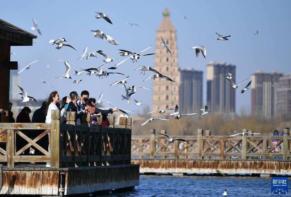 近日,隨著天氣逐漸轉暖,寧夏銀川市海寶公園迎來大批紅嘴鷗、遺鷗等候鳥。