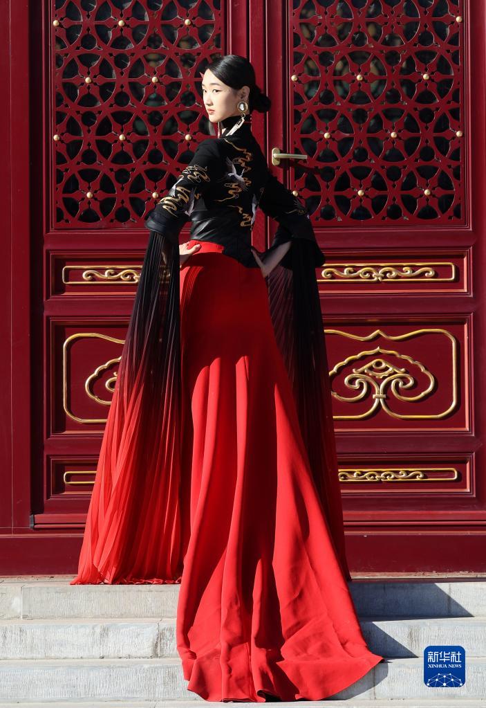 3月18日,模特在展示知名時裝設計師熊英設計的具有非遺元素的時裝。