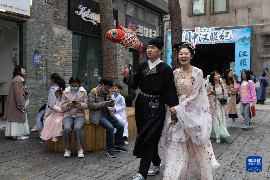 當日,為期三天的2023年中華民族服飾展演暨閬中漢服紀在四川省閬中古城舉行,全國各地傳統服飾愛好者齊聚閬中古城,穿漢服、游古城,“以服會友”。