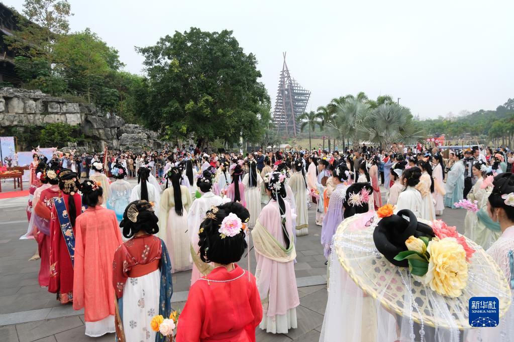 當日,廣西南寧園博園第二屆“禮樂園博·南寧花朝盛典”舉行。漢服新秀大賽、同袍巡游、明制婚禮儀式典禮、六藝游園等活動,讓人們身臨其境感受傳統文化的魅力。