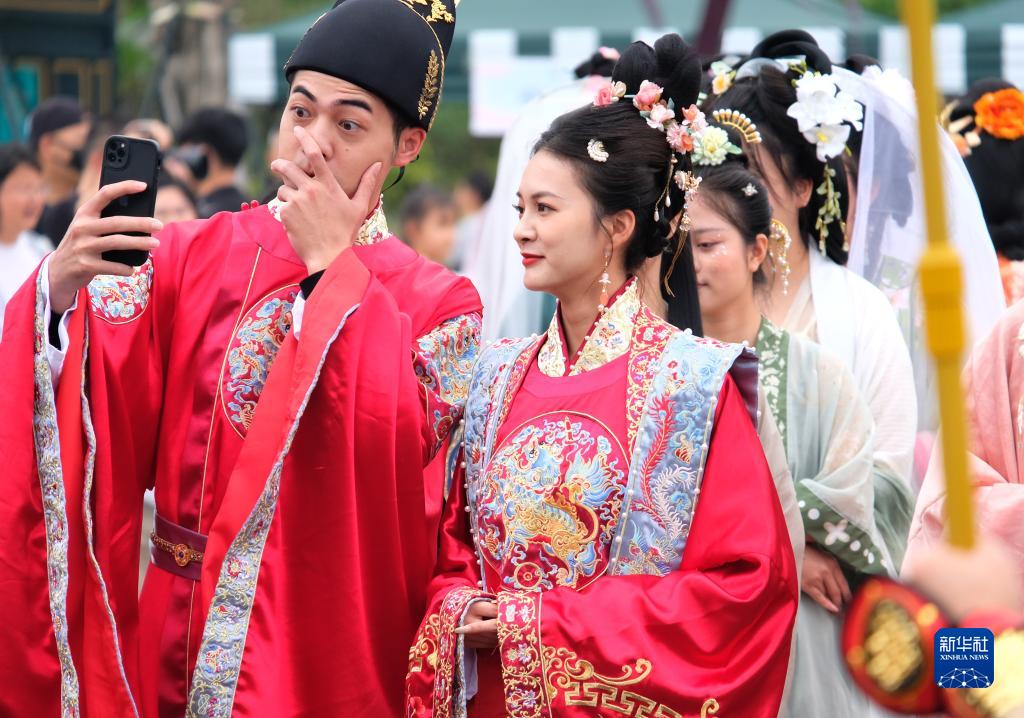 當日,廣西南寧園博園第二屆“禮樂園博·南寧花朝盛典”舉行。漢服新秀大賽、同袍巡游、明制婚禮儀式典禮、六藝游園等活動,讓人們身臨其境感受傳統文化的魅力。