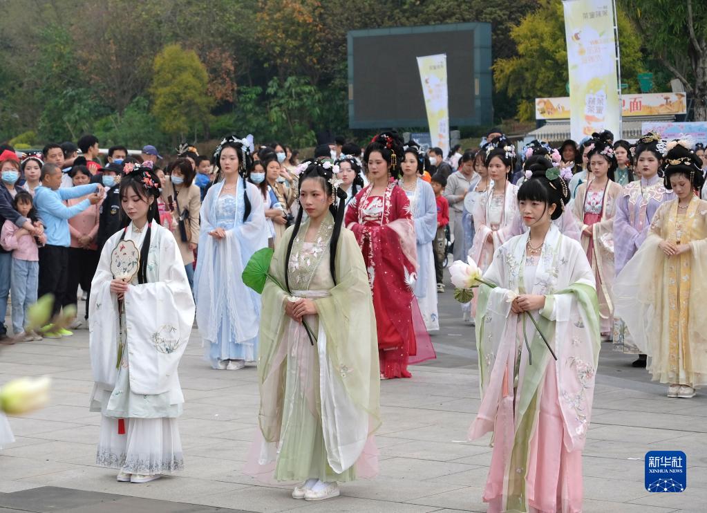 當日,廣西南寧園博園第二屆“禮樂園博·南寧花朝盛典”舉行。漢服新秀大賽、同袍巡游、明制婚禮儀式典禮、六藝游園等活動,讓人們身臨其境感受傳統文化的魅力。