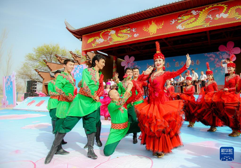 3月18日,演員在吐魯番杏花節開幕式上表演。