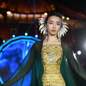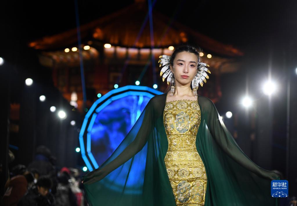 當晚,山東省青島市2023上街里·逛春天旅游藝術季華服時裝秀在棧橋景區回瀾閣前舉行。