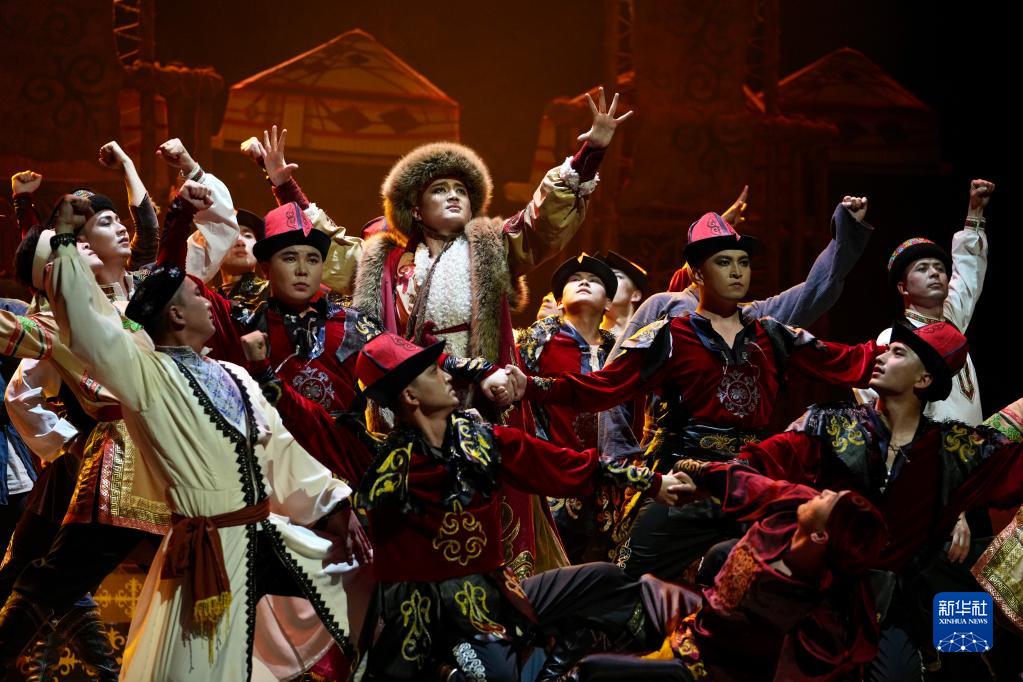 當日,2023年“全國民族地區藝術院團晉京展演”拉開大幕,原創歌舞劇《瑪納斯》在北京民族劇院上演,《瑪納斯》是柯爾克孜族英雄史詩。