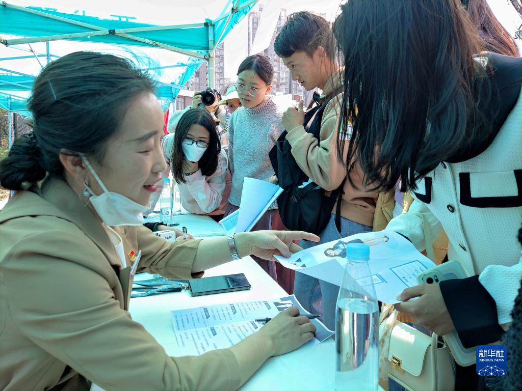 3月16日,云南師范大學教師左文君(左)在招聘會上與學生交流。新華社記者 林碧鋒 攝