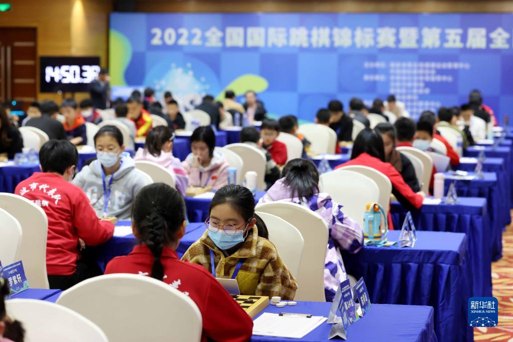 3月18日,在2022全國國際跳棋錦標賽現場,選手在進行比賽。