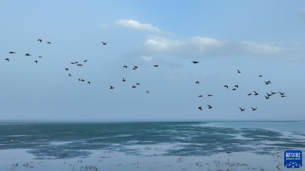 隨著天氣轉暖,冰雪消融的新疆博斯騰湖迎來大批候鳥回歸。