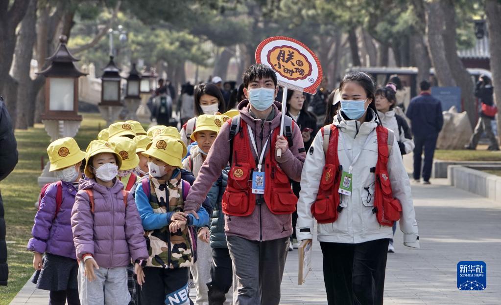 3月19日,小朋友在故宮博物院游覽。