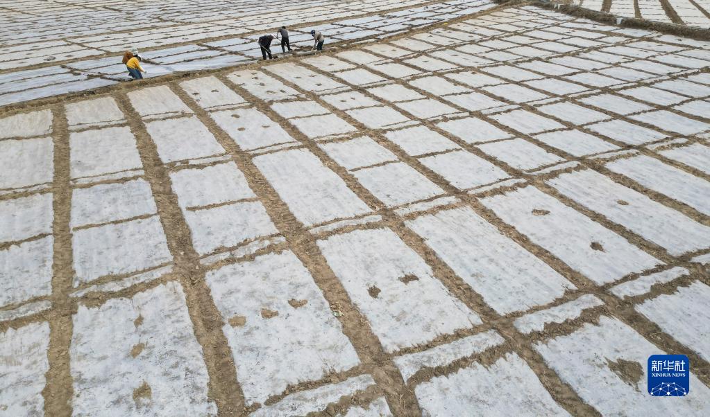 時下,甘肅省東鄉族自治縣農民搶抓土壤解凍、墑情地溫適宜等有利時機,給土地覆膜保墑,確保春耕春播生產順利進行。