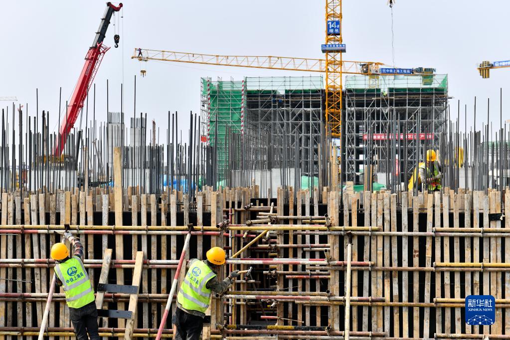 3月19日,在濟南地鐵6號線位里莊車輛段,中鐵上海局的工作人員在作業中。