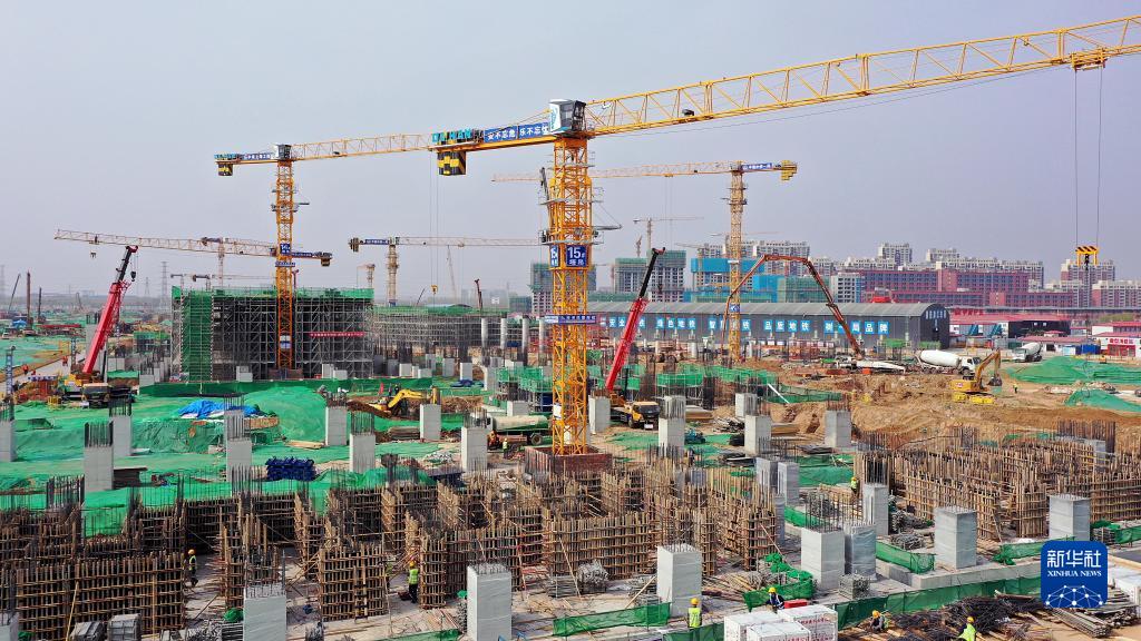 濟南地鐵6號線位里莊車輛段施工現場(3月19日攝,無人機照片)。