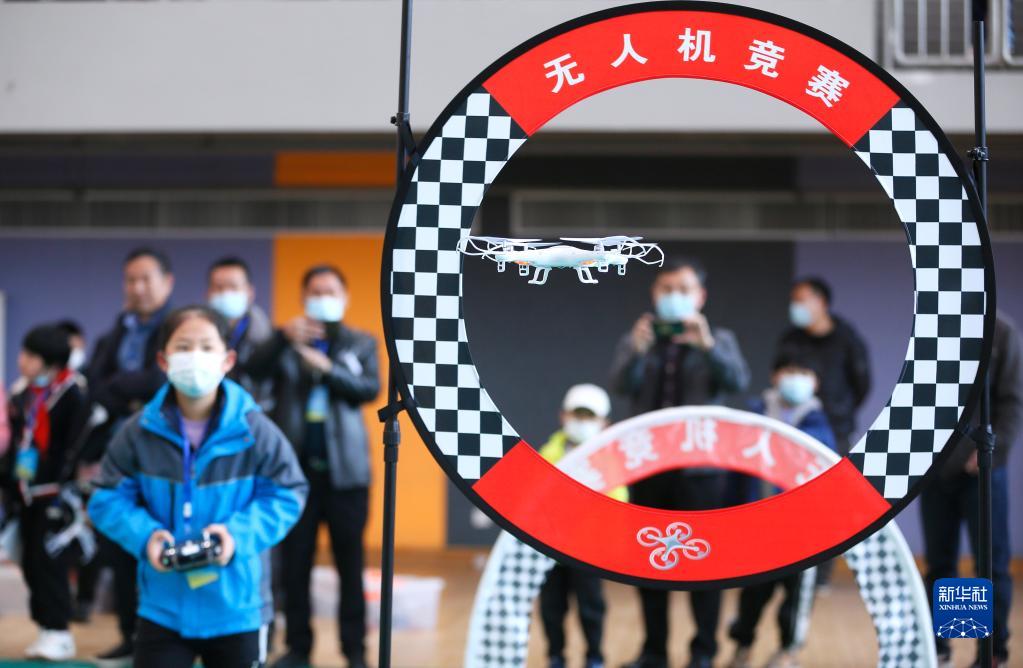 3月19日,青島市即墨區的學生在參加“無人機小飛手”項目比賽。