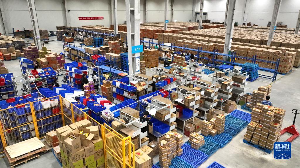 3月19日,在柳州市柳江區新興工業園一家物流企業,工人在倉庫里分揀物流快件。