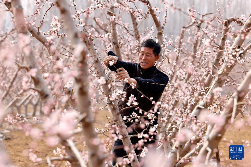 3月19日,山東省棗莊市稅郭鎮長汪村農民在桃園里對桃樹進行春剪。