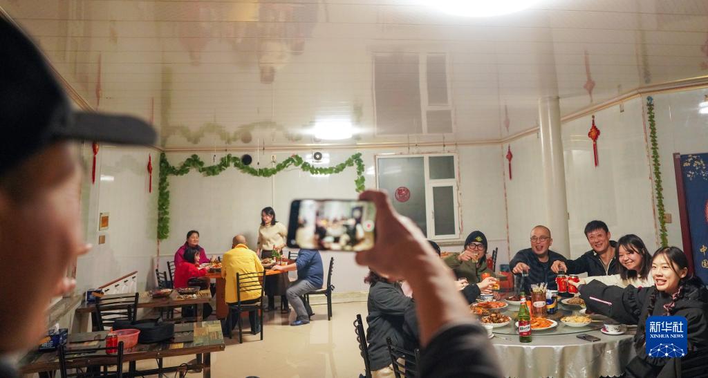 這是2023年1月21日,邵鋒在自家民宿里為家人和雪友合影。