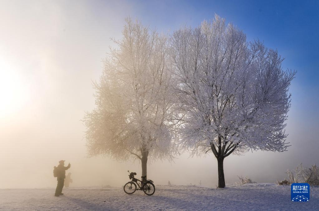 2018年1月11日,游客在吉林市豐滿區松花江畔觀賞霧凇景觀。