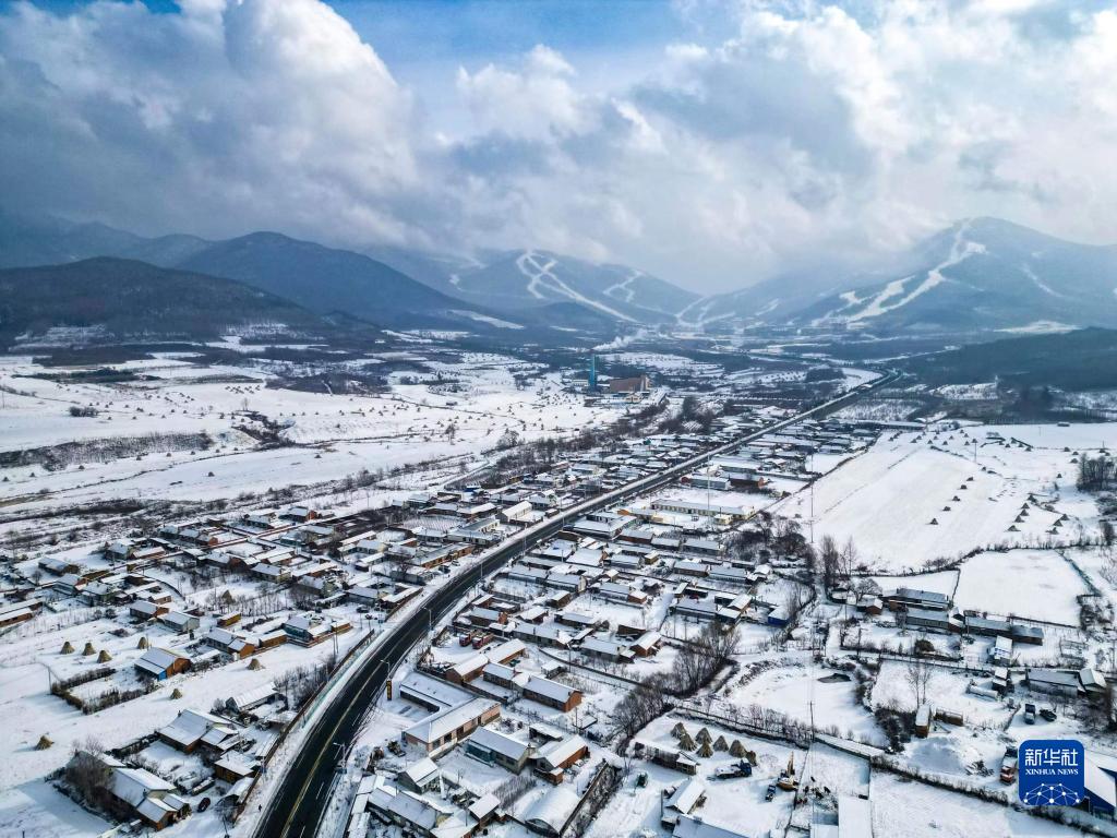 2023年1月19日,白雪覆蓋的吉林市永吉縣北大湖鎮南溝村(無人機照片)。