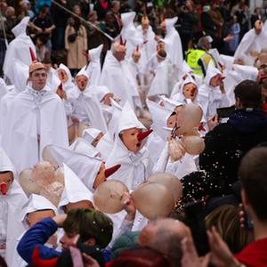 斯塔沃洛狂歡節是比利時最具特色的狂歡節活動之一??駳g節期間,身著白色教士服,頭戴胡蘿卜狀長鼻子面具的“白衣人”要用吹起的豬膀胱敲打路人的頭,并向人們拋灑碎紙片。