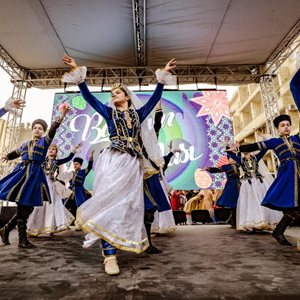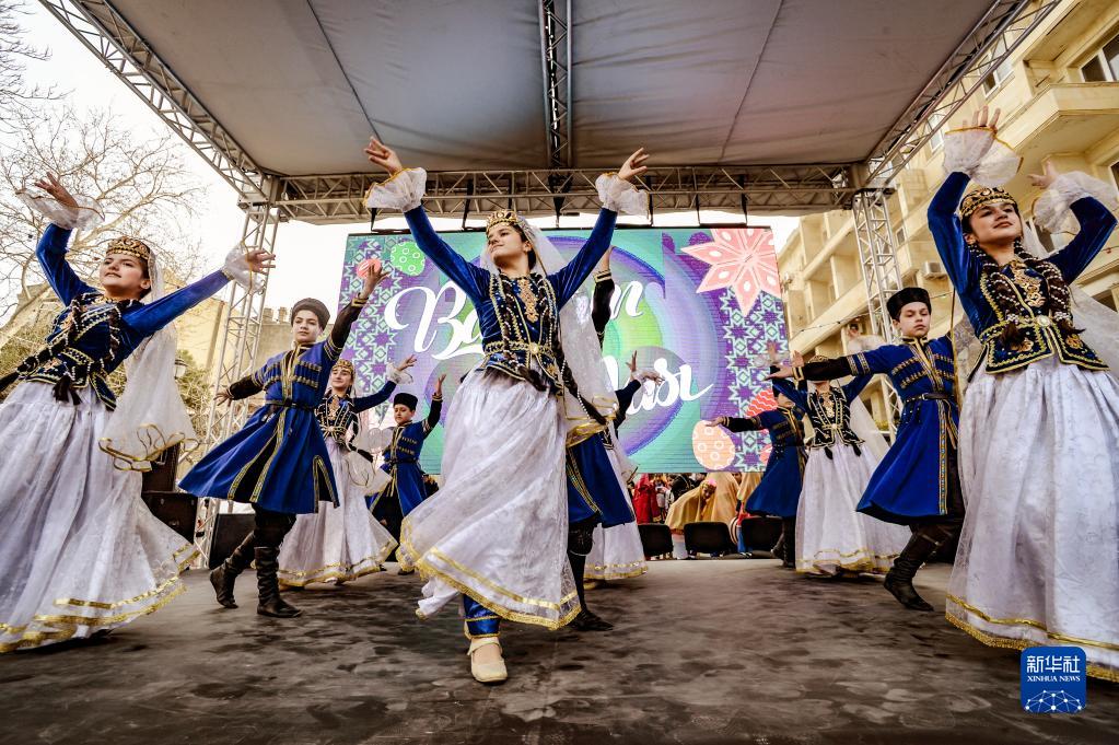 3月19日,人們在阿塞拜疆首都巴庫舉行慶?;顒?,迎接即將到來的諾魯孜節。
