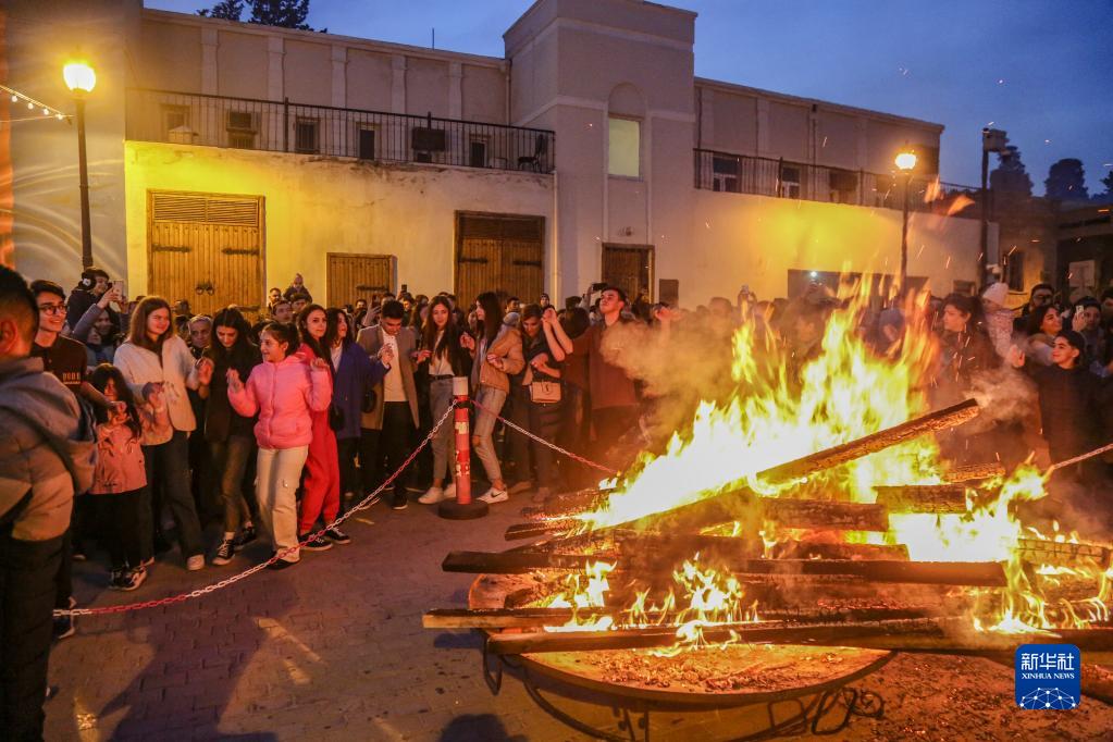3月19日,人們在阿塞拜疆首都巴庫舉行慶?;顒?,迎接即將到來的諾魯孜節。
