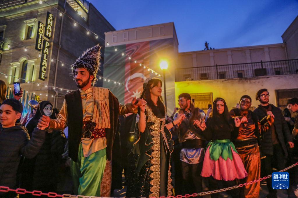 3月19日,人們在阿塞拜疆首都巴庫舉行慶?;顒?,迎接即將到來的諾魯孜節。
