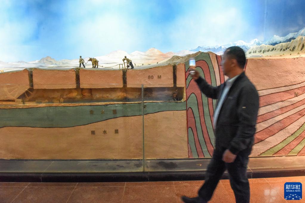 在新疆吐魯番坎兒井樂園,游客在參觀坎兒井模型(3月11日攝)。
