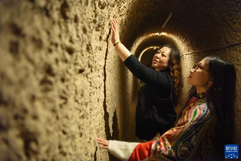 在新疆吐魯番坎兒井樂園,游客在參觀坎兒井(3月11日攝)。