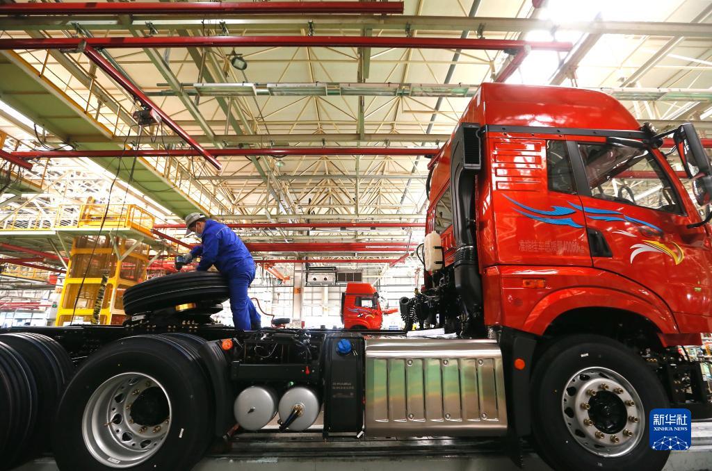3月20日,在位于山東省青島市即墨區的一汽解放青島汽車有限公司總裝車間,工人在組裝汽車。