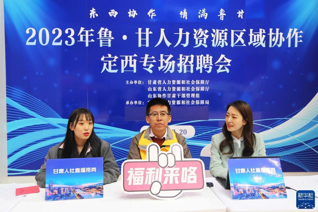 當日,2023年魯甘人力資源區域協作定西專場招聘會在甘肅定西舉行。招聘會采取線下咨詢招聘和線上直播帶崗相結合的方式,100余家招聘企業提供5000余個就業崗位,涉及財會、銷售、文秘、家政等多個領域。近年來,山東和甘肅兩省在推動東西部勞務協作和穩就業工作方面持續深化合作。