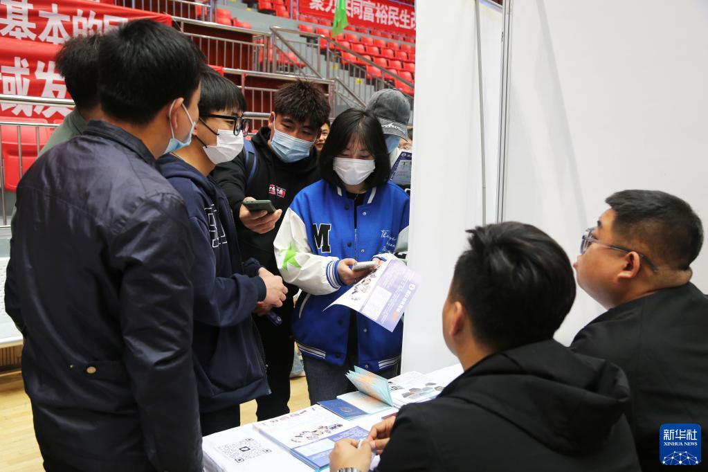 3月20日,求職者在招聘會上與用人單位工作人員溝通。