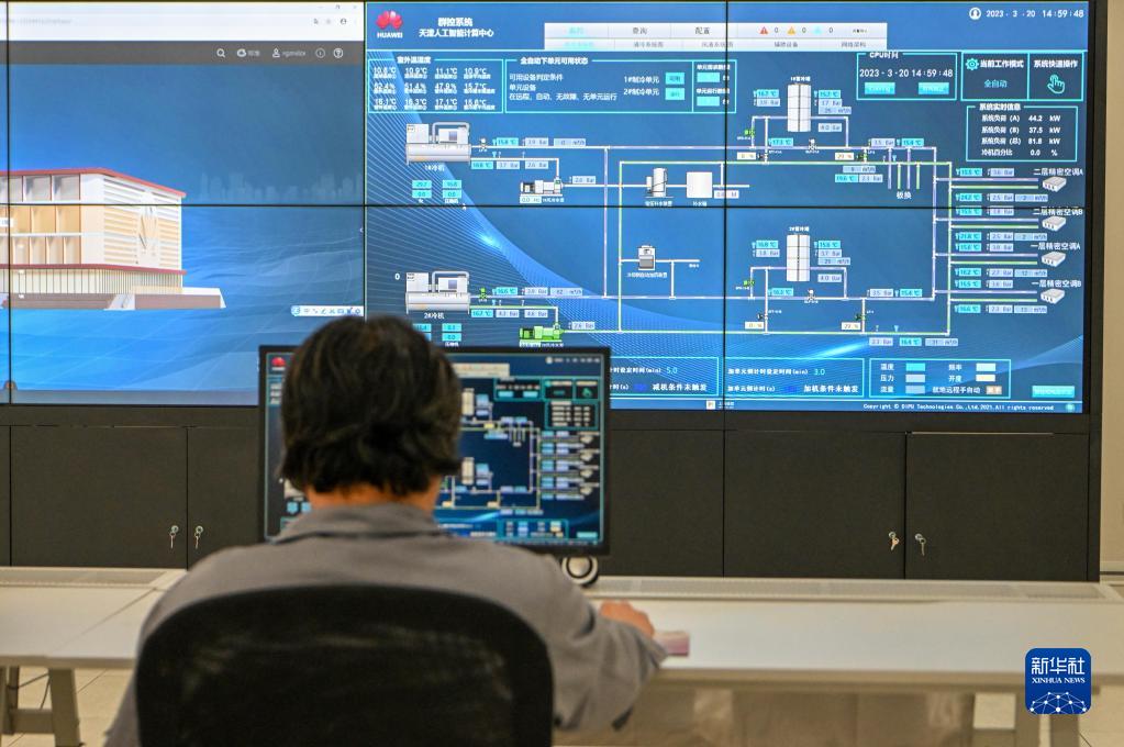 3月20日,在天津市人工智能計算中心中控室,技術人員在監控設備運行情況。