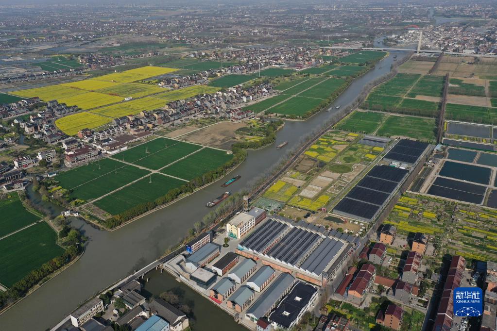 3月15日拍攝的流經浙江省杭州市臨平區運河街道的京杭大運河及沿岸景觀(無人機照片)。