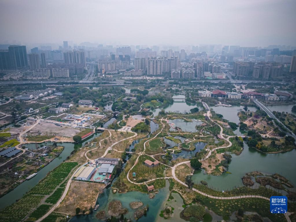 這是3月16日拍攝的浙江溫州生態園三垟濕地景色(無人機照片)。