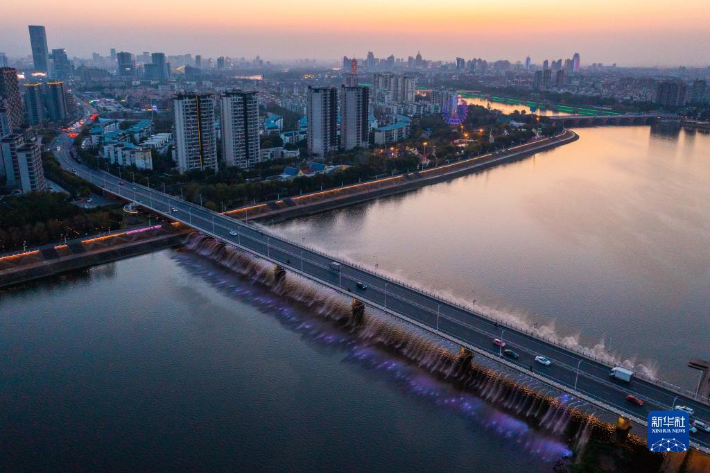 夜色中的浙江省金華市金東區東陽江(3月14日攝,無人機照片)。因為江水清澈、景觀橋燈光璀璨,這里成為了市民百姓散步休閑的好去處。