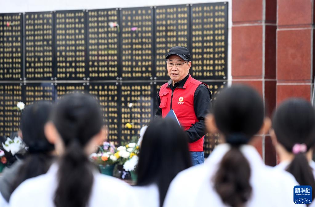 3月21日,在天津市薊州區元寶山莊生命紀念公園,天津市紅十字會志愿者向天津醫科大學學生講述遺體捐獻者的故事。