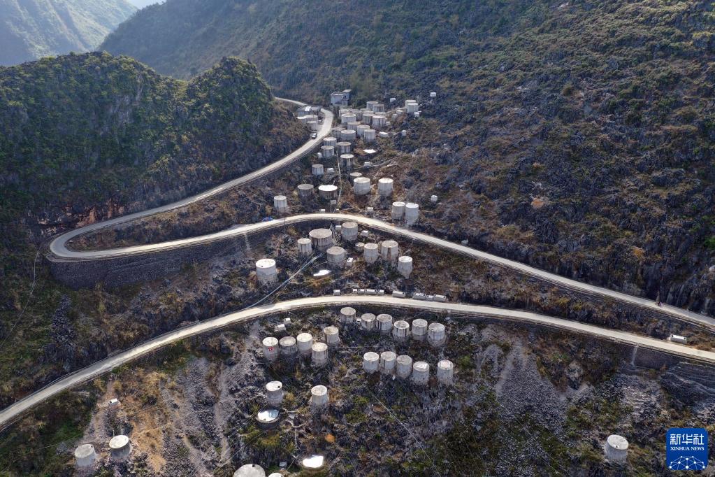這是廣西大化瑤族自治縣江南鄉上和村村民的家庭水柜(2021年2月6日攝,無人機照片)。